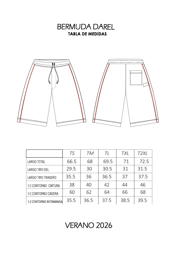 Bermuda larga, con elastico en cintura y bolsillos laterales. Recorte con tirilleras.