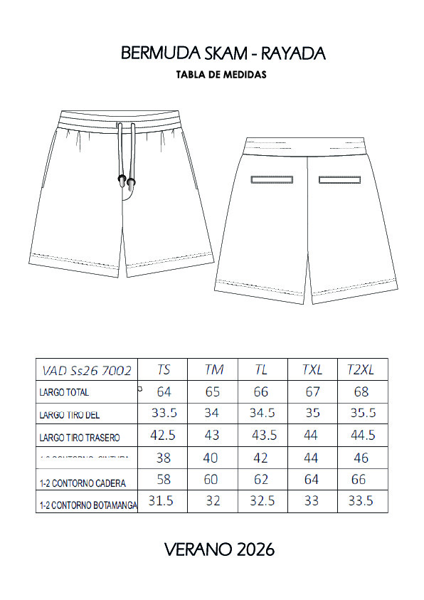 Bermuda 3/4, tela mila rayada. Relgulador en cintura y bolsillos laterales.