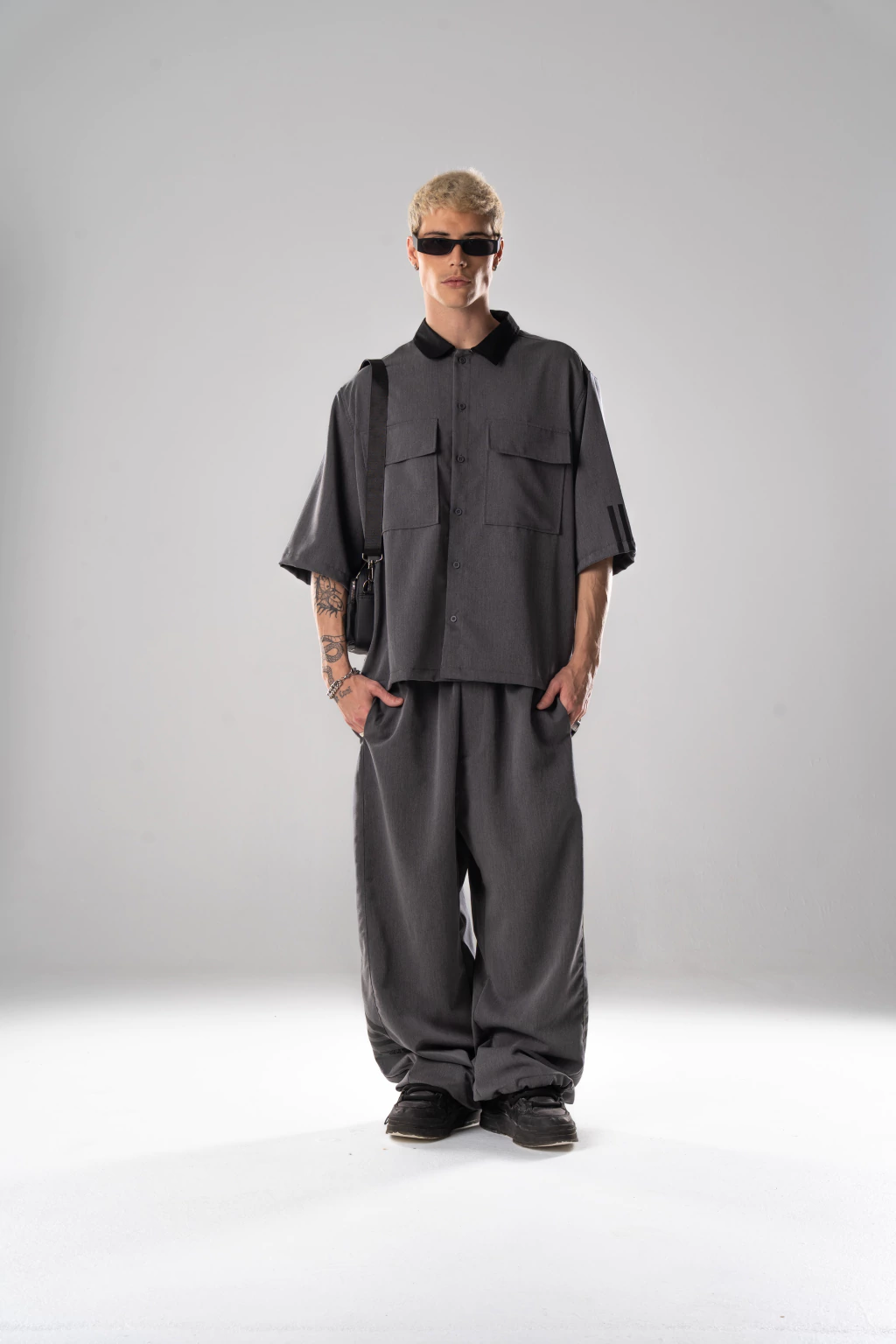 Camisa corte boxy, de tela muji, abotonada, cuello camisero.
