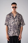 Camisa corte boxy, de tela lino washed, abotonada, cuello camisero.